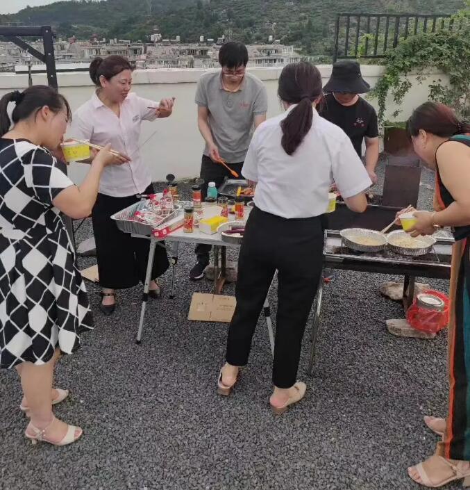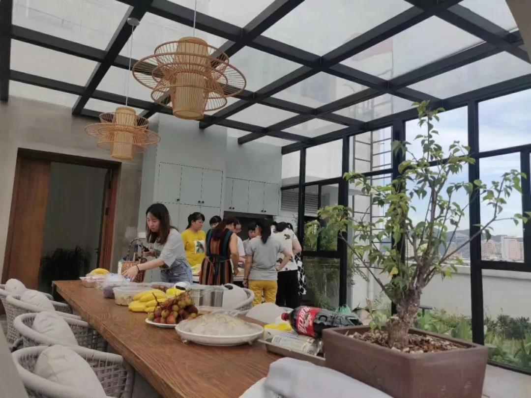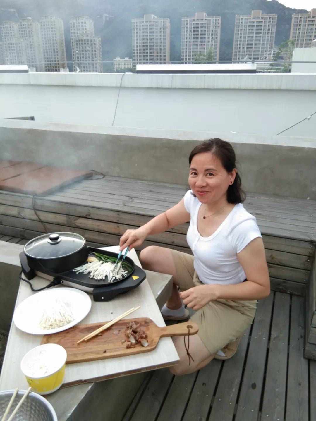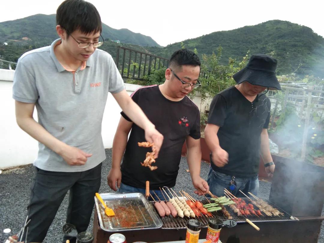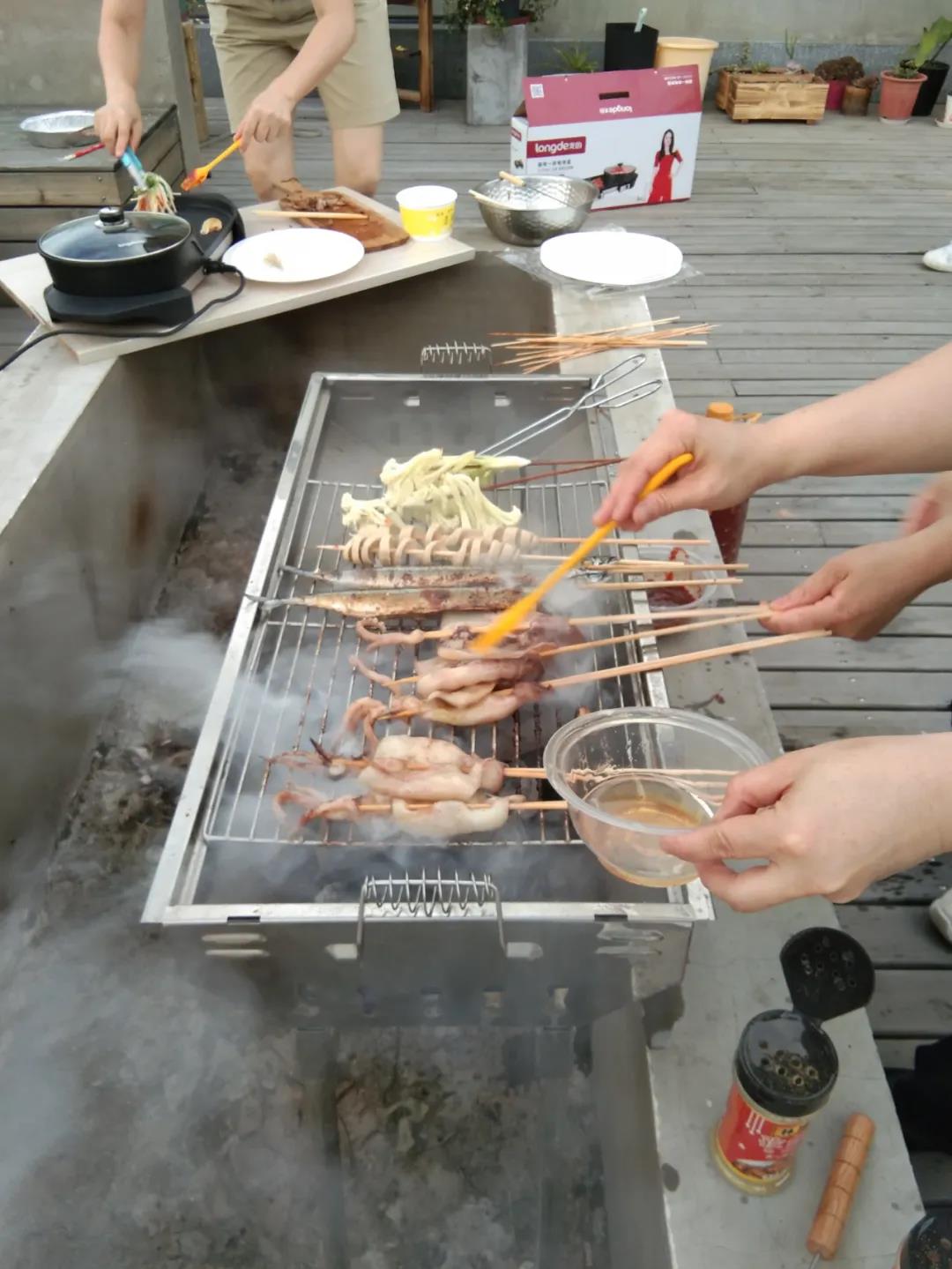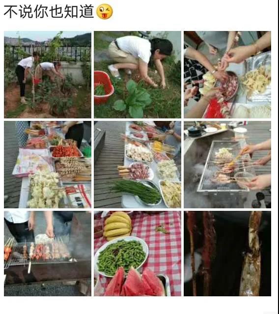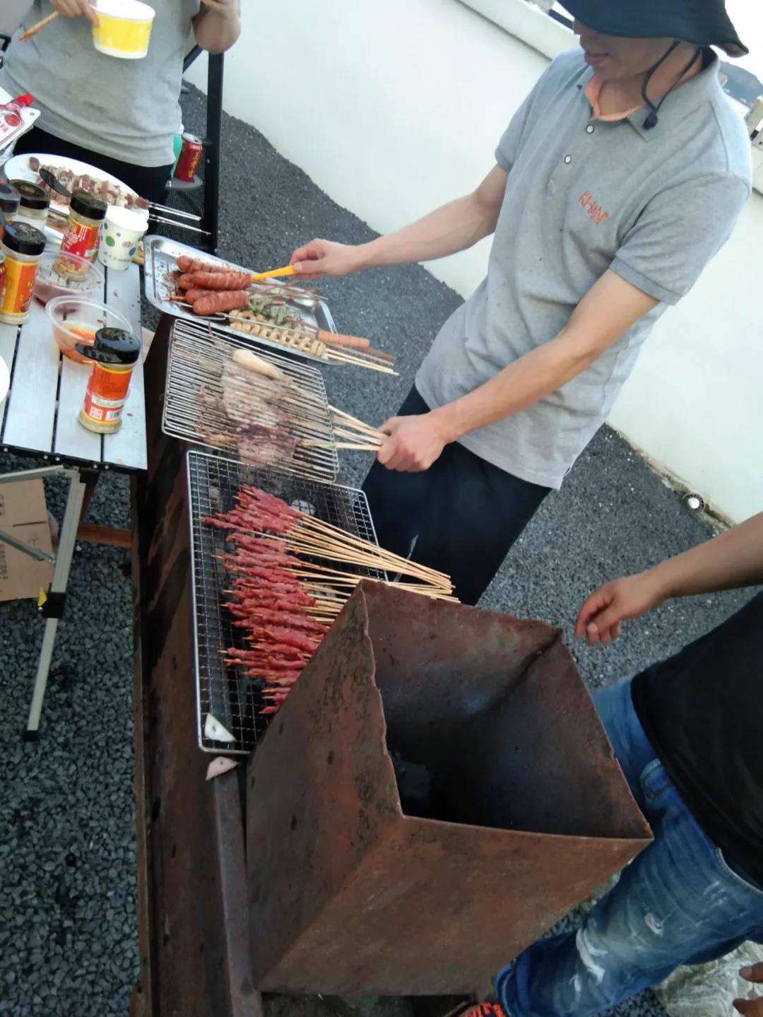 2020年6月13日下午下班后,燒烤活動在公司B棟陽臺如火如荼地進行,那里有陽光房、走廊、砂礫、秋千、音樂、向日葵、玫瑰、草莓、茄子、黃瓜等,應(yīng)有盡有。