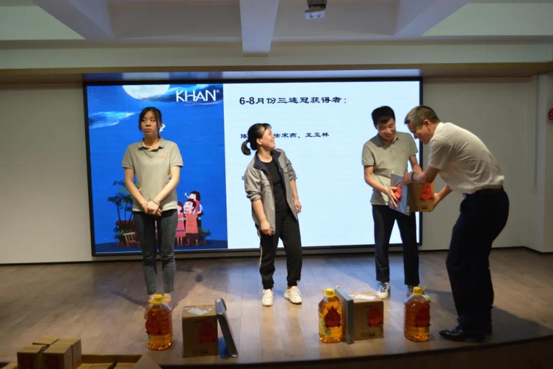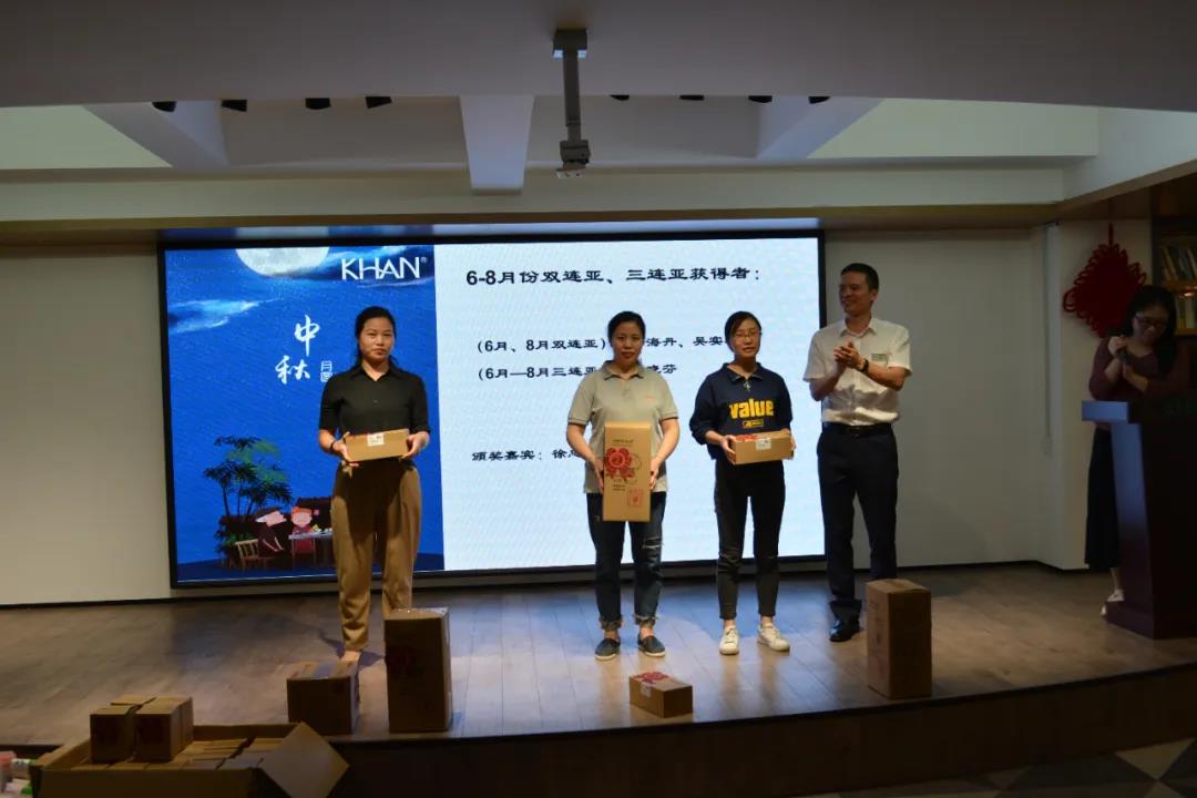 隨后,公司對6-8月份的積分獲獎者進行了頒獎。