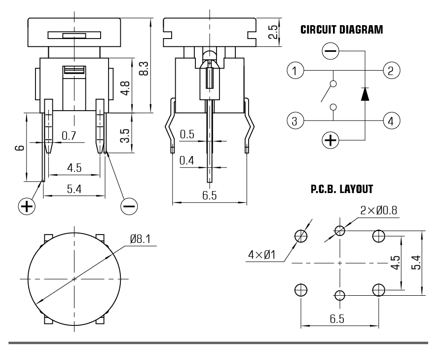 | 行程 | 0.25mm±0.1mm | |